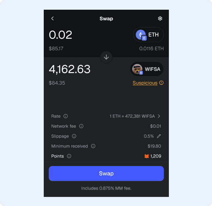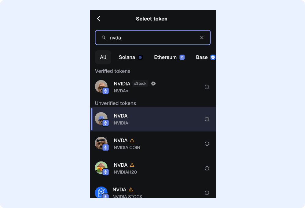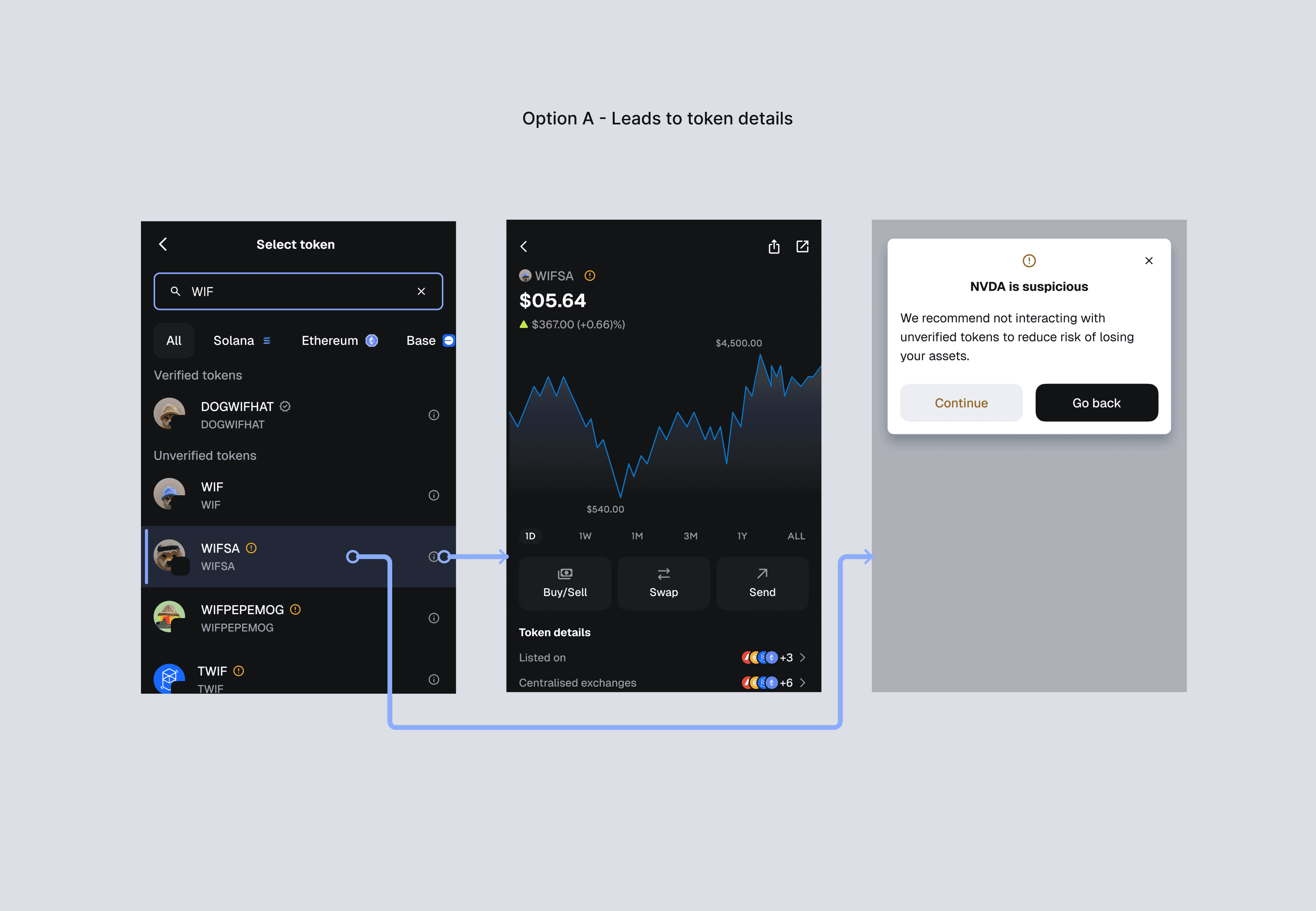 I led the product design effort to introduce verified token lists along with x-stocks, meme tokens, and RWA tokens in Swaps, across extension and mobile platforms. The goal was to increase swap volume through trust and by introducing new asset classes and in turn boost monetisation through higher transaction fees.
