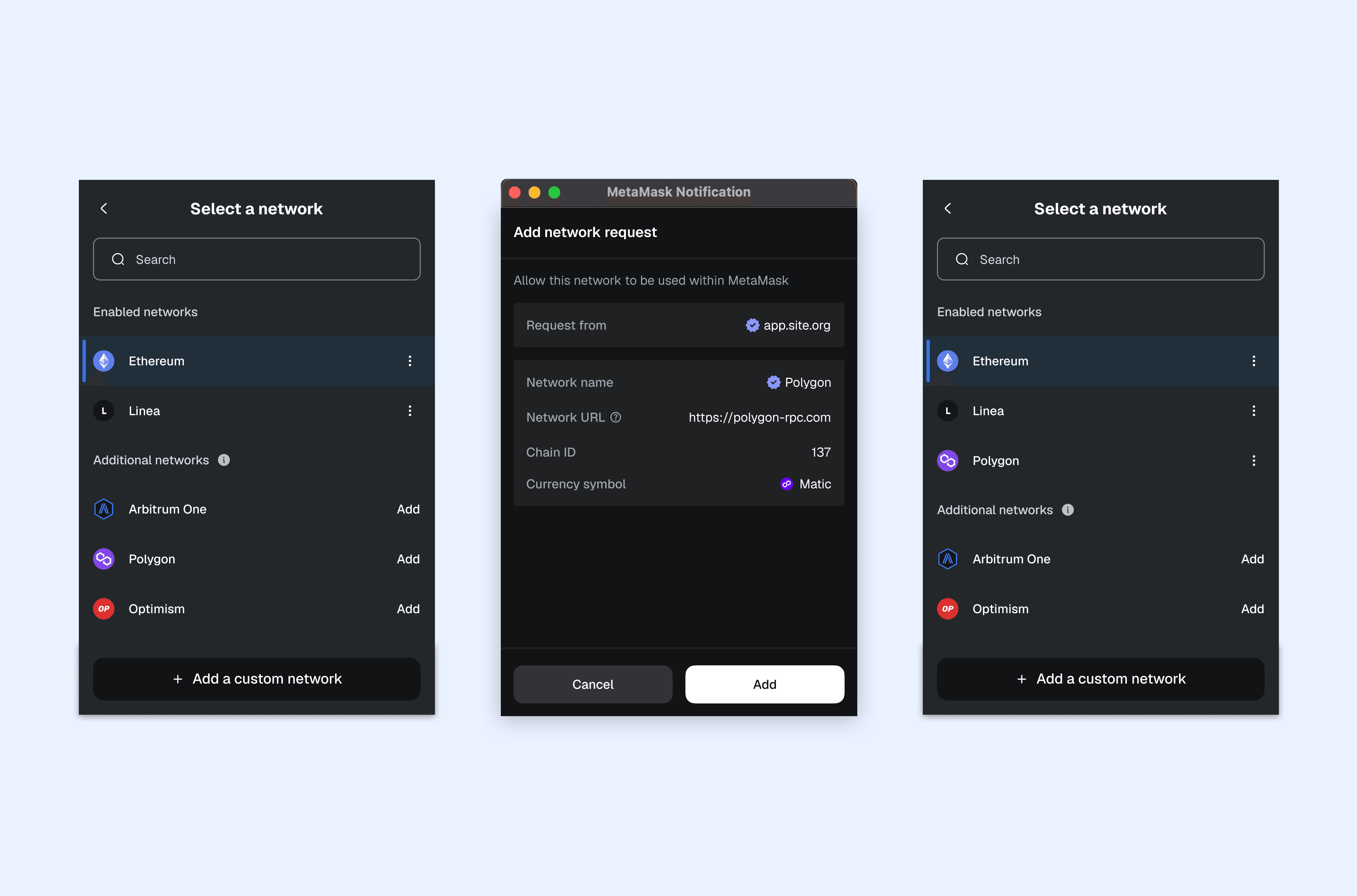 Showied the network details before users added the network, we could alert users to any discrepancies found.