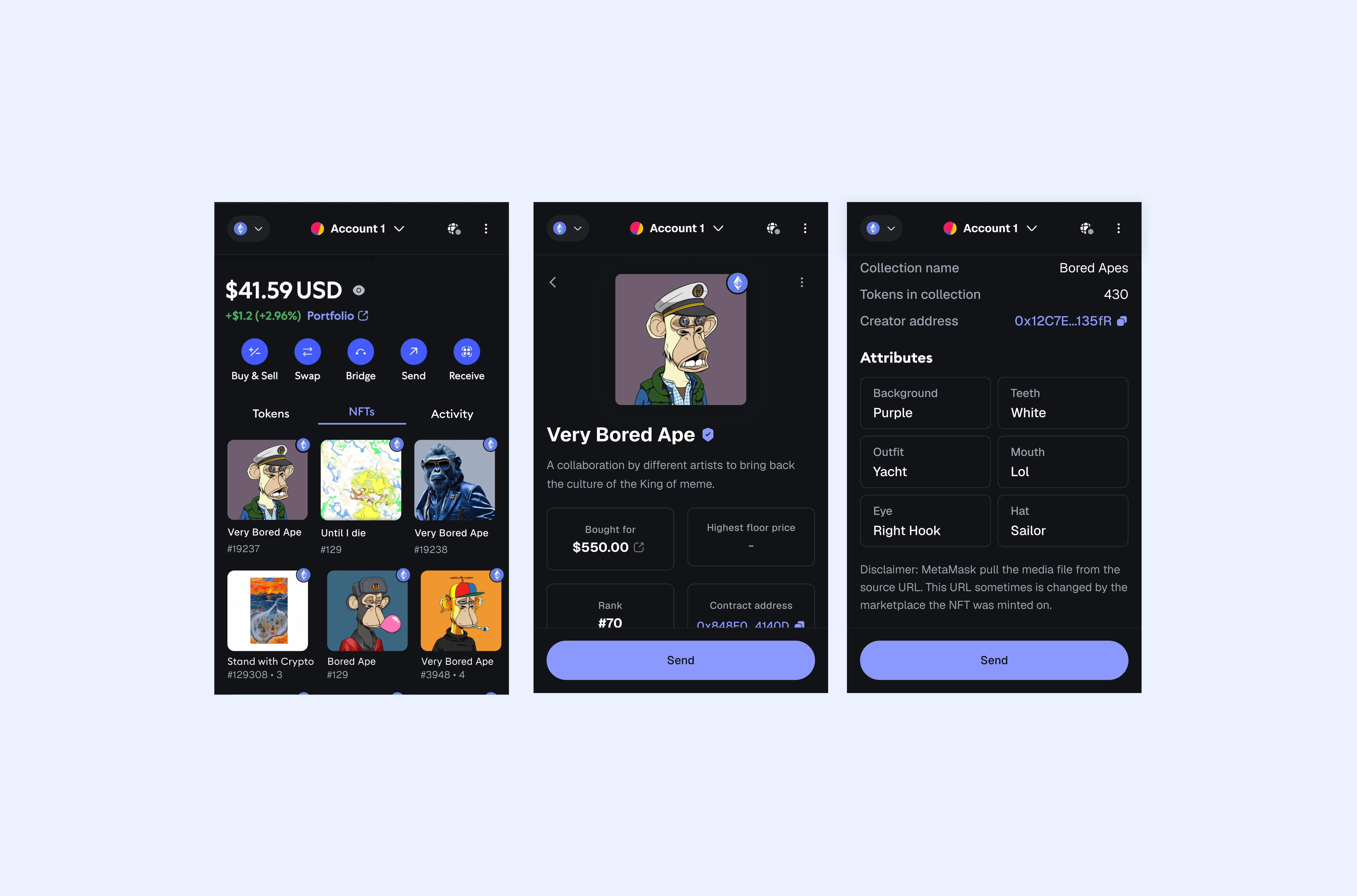 When I joined MetaMask in 2021, the ecosystem was evolving at lightning speed. User adoption was accelerating beyond expectations, bringing both exciting opportunities and new challenges. During this time, I worked across a range of projects aimed at supporting product growth, improving user experience, and building safeguards to protect users from scams. A key part of my role involved designing with education and security in mind, helping users navigate the rapidly expanding web3 landscape with greater confidence.